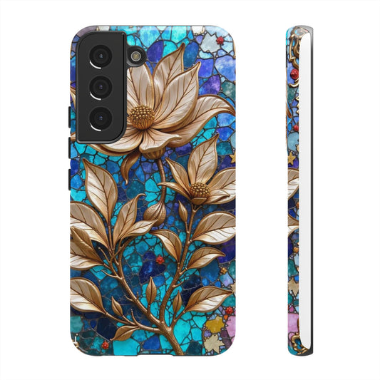 Golden Bloom – Luxe Stained Glass Floral Phone Case for iPhone, Samsung & Pixel