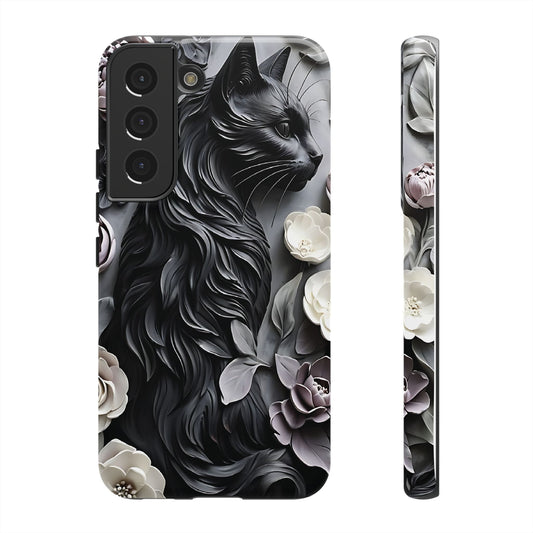 Intricate Bas-Relief Sculpture Of Black Cat Among Flowers phone case design