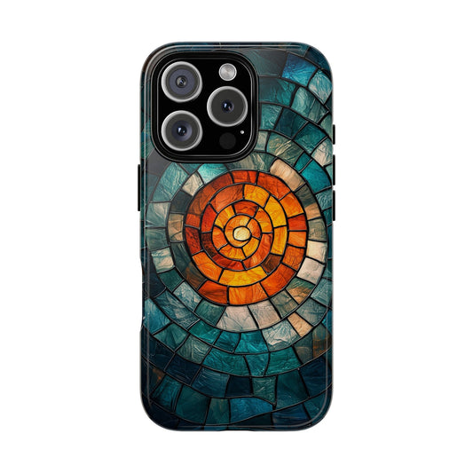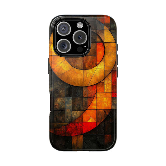 Inferno Spiral – Geometric Stained Glass Art Phone Case for iPhone, Samsung & Pixel