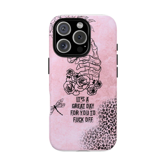 It's a Great Day For You To Fuck Off Phone Case, Funny & Bold Cover for iPhone, Samsung & Google Pixel, Skeleton Hand Phone Case,