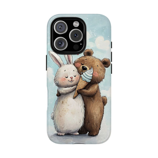 Cozy Bunny & Bear Ice Cream Love - Cute Anime Phone Case for iPhone, Samsung, Google Pixel