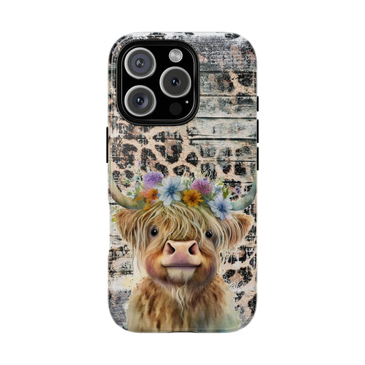 Leopard Print Heifer Phone Case - iPhone, Samsung & Google Pixel Cover - Artistic Cow Phone Case, Animal Lover Gift