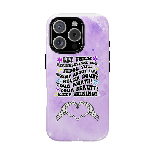 Skeleton Hand Heart Phone Case, Let Them Misunderstand You, Judge You, Gossip About You, Never Doubt Your Worth, Your Beauty Keep Shining Phone Case, Motivational Quote Cover for iPhone, Samsung & Google Pixel White Peach Checkered Pattern Phone Cover
