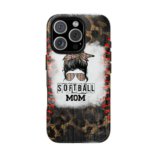 Softball Mom Phone Case for iPhone, Samsung & Google Pixel, Messy Bun Phone Case, Leopard Print Phone Case, Sports Lover Gift