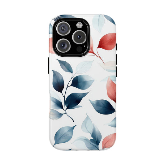 Blush & Blue Botanical Leaves Phone Case | Soft Nature-Inspired Design for iPhone, Pixel & Samsung