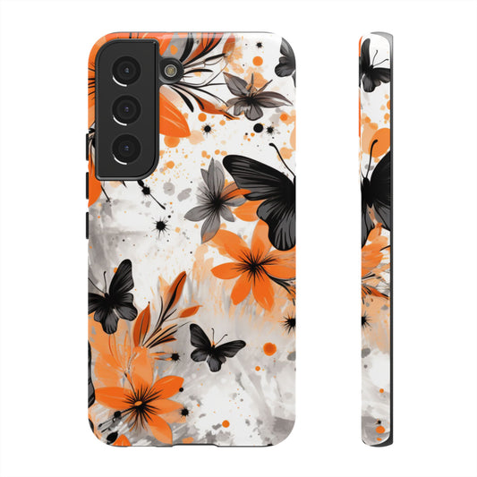 Bold Butterfly & Floral Splash Mobile Cover – Black & Orange Aesthetic