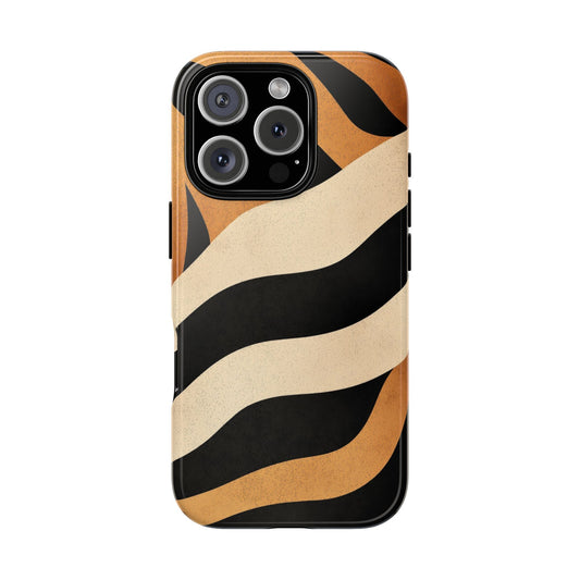 Bold Tiger Stripes Phone Case – Black, Orange & Cream Perfect for iPhone, Samsung & Google Pixel