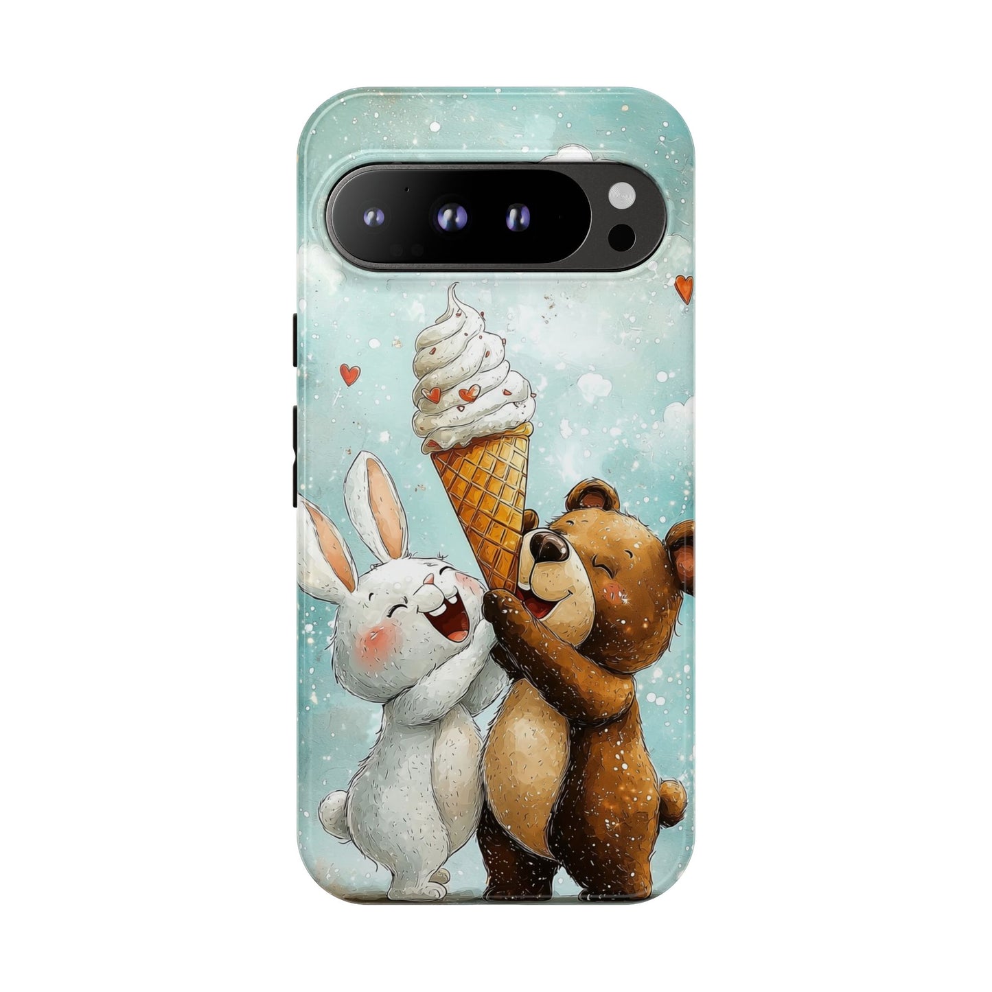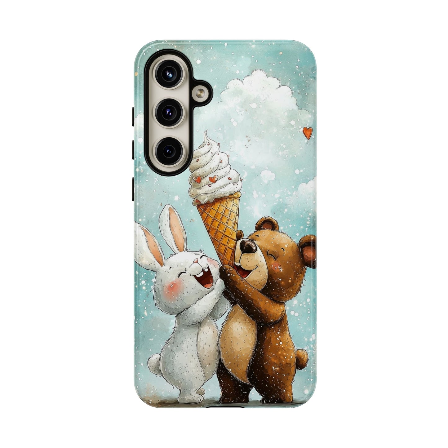 Bear & Bunny Ice Cream Delight - Cute Anime Phone Case for iPhone, Samsung, Google Pixel