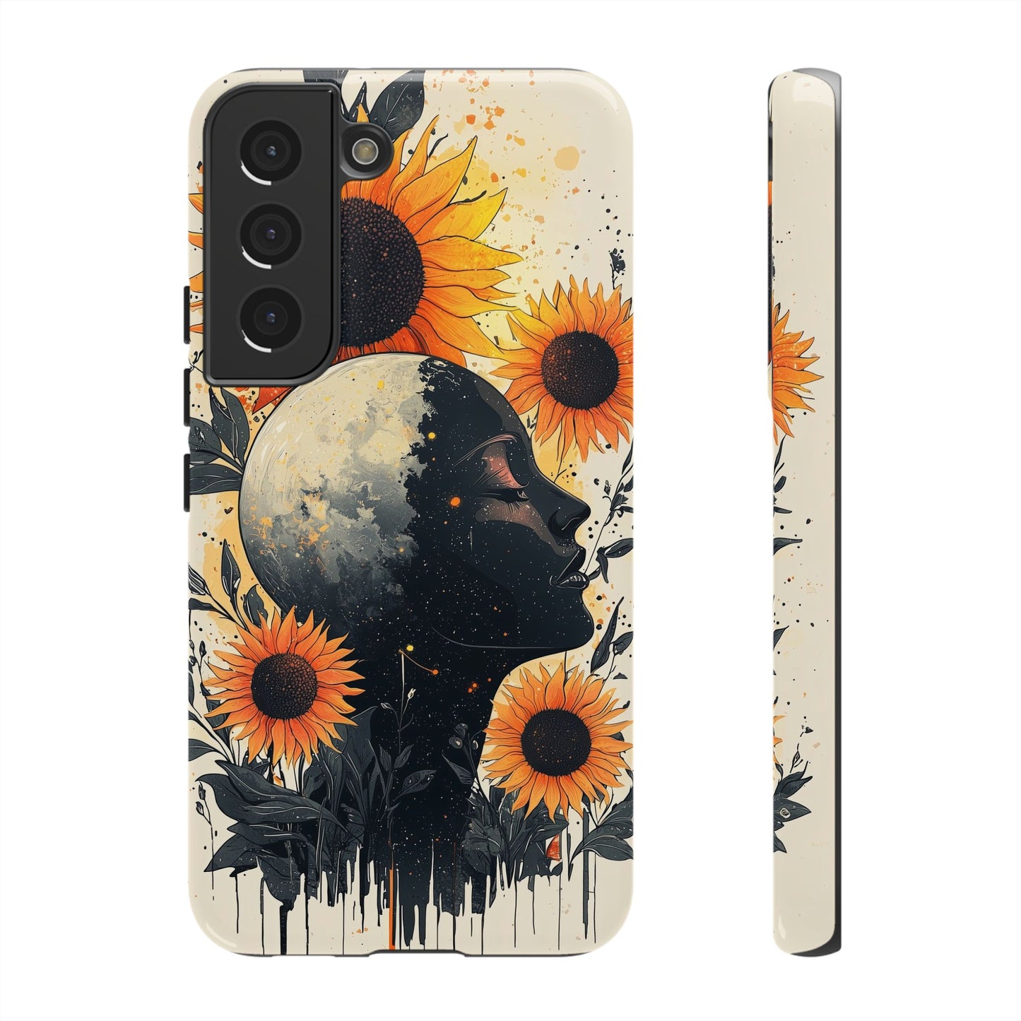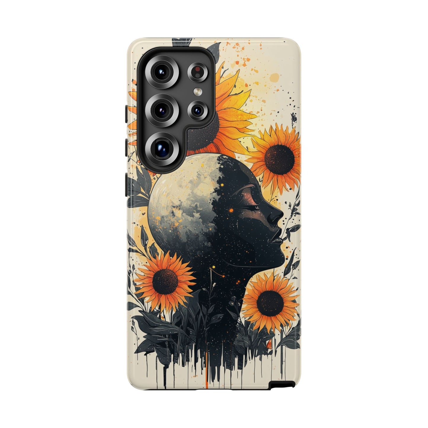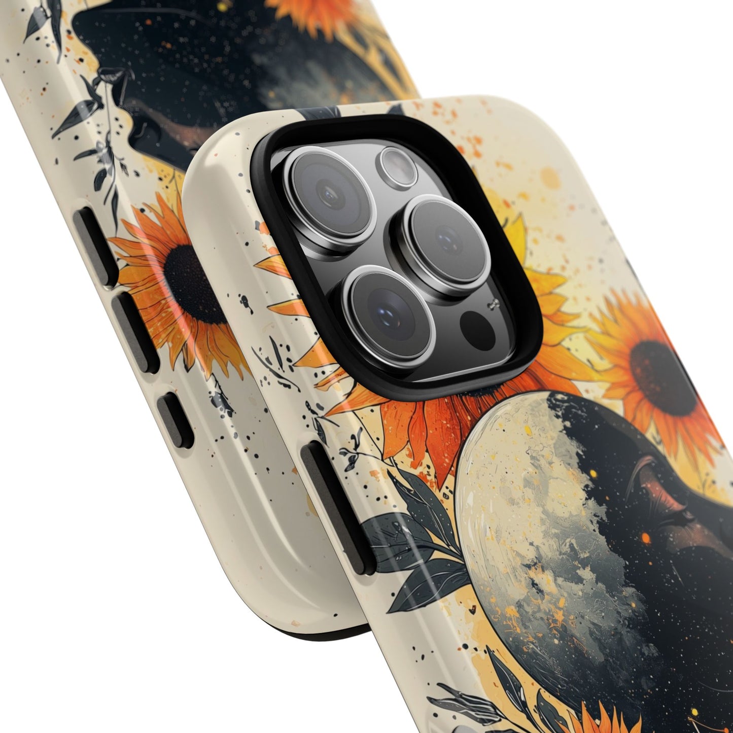 Let your phone radiate celestial beauty with this dreamy boho case — featuring a moonlit silhouette surrounded by bold sunflowers. A magical blend of nature and cosmic vibes, designed for iPhone, Google Pixel, and Samsung.