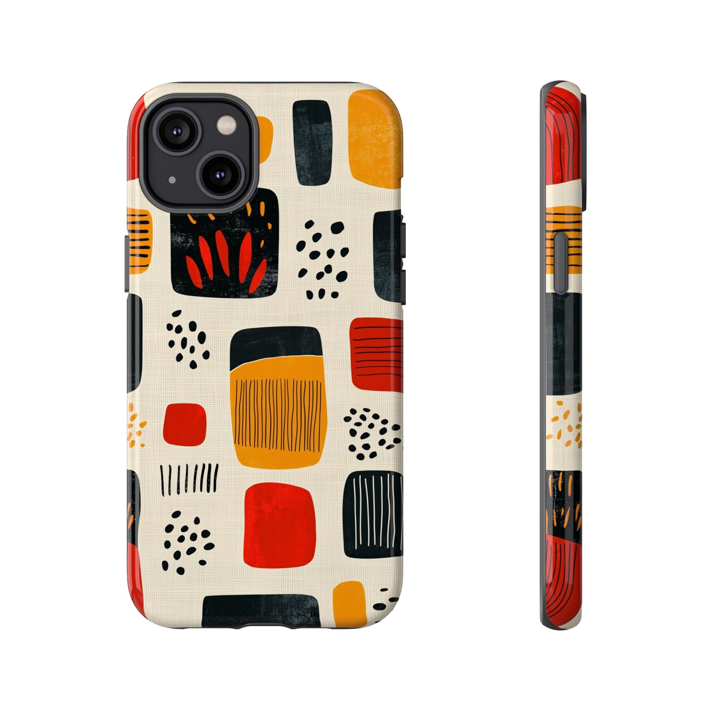 Turn heads with this bold and artsy boho-inspired phone case featuring vibrant abstract blocks and tribal motifs. A perfect blend of style and protection, this case is available for iPhone, Google Pixel, and Samsung models.
