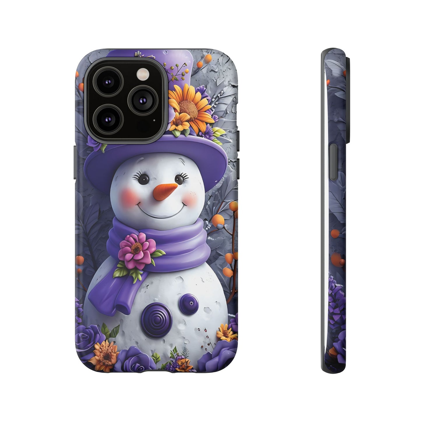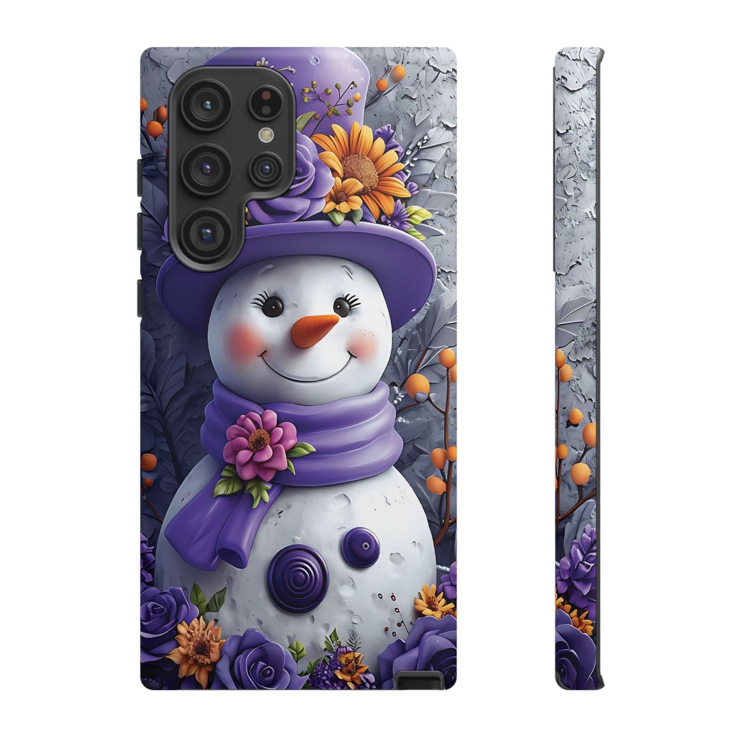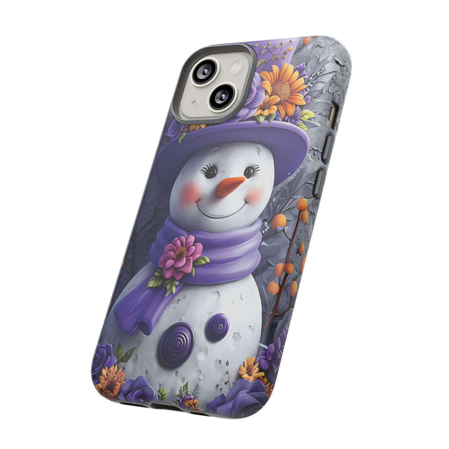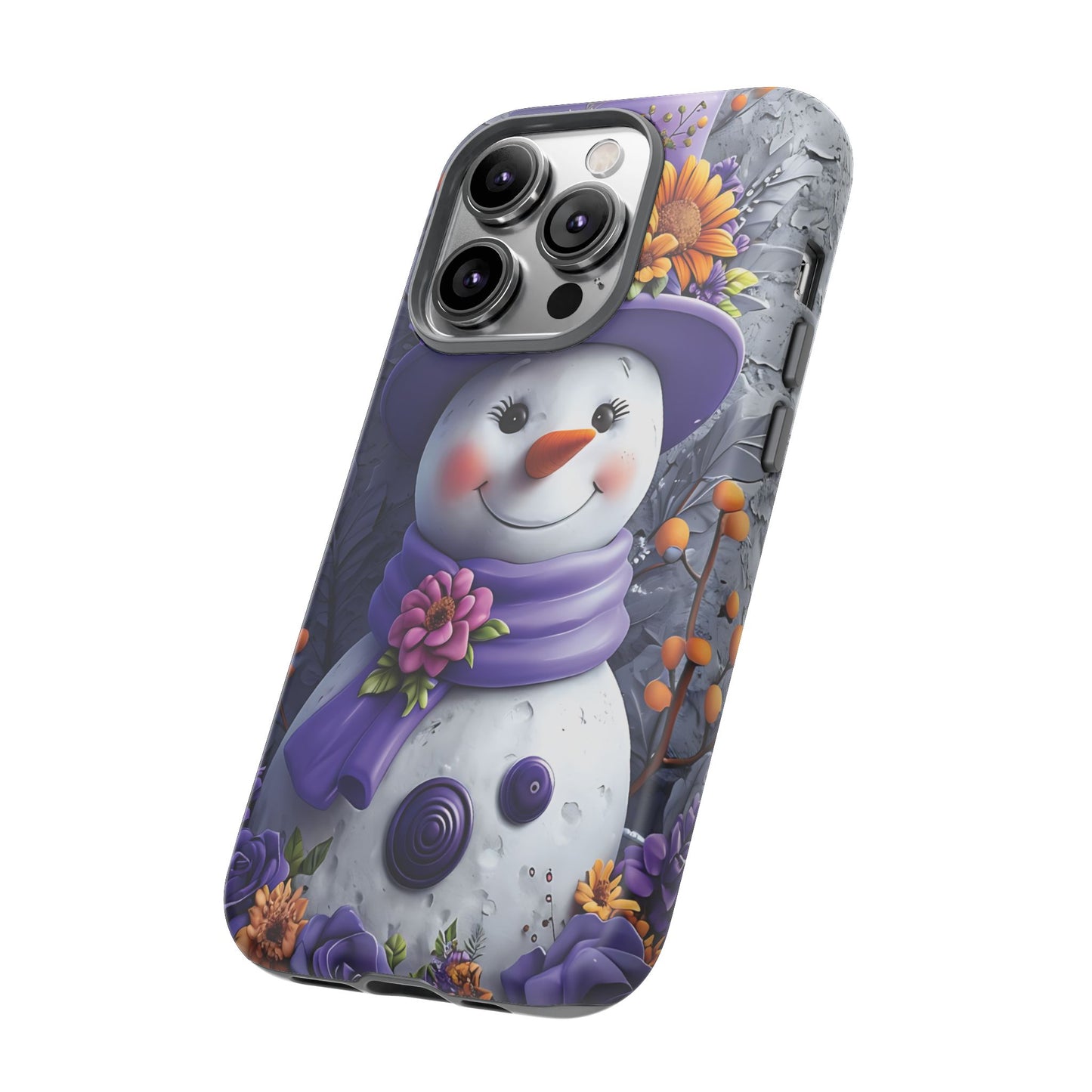 Bring the magic of winter to your phone with this delightful and cheerful snowman design! Featuring a whimsical snowman adorned with a vibrant floral hat and a colorful scarf, this phone case is the perfect blend of holiday