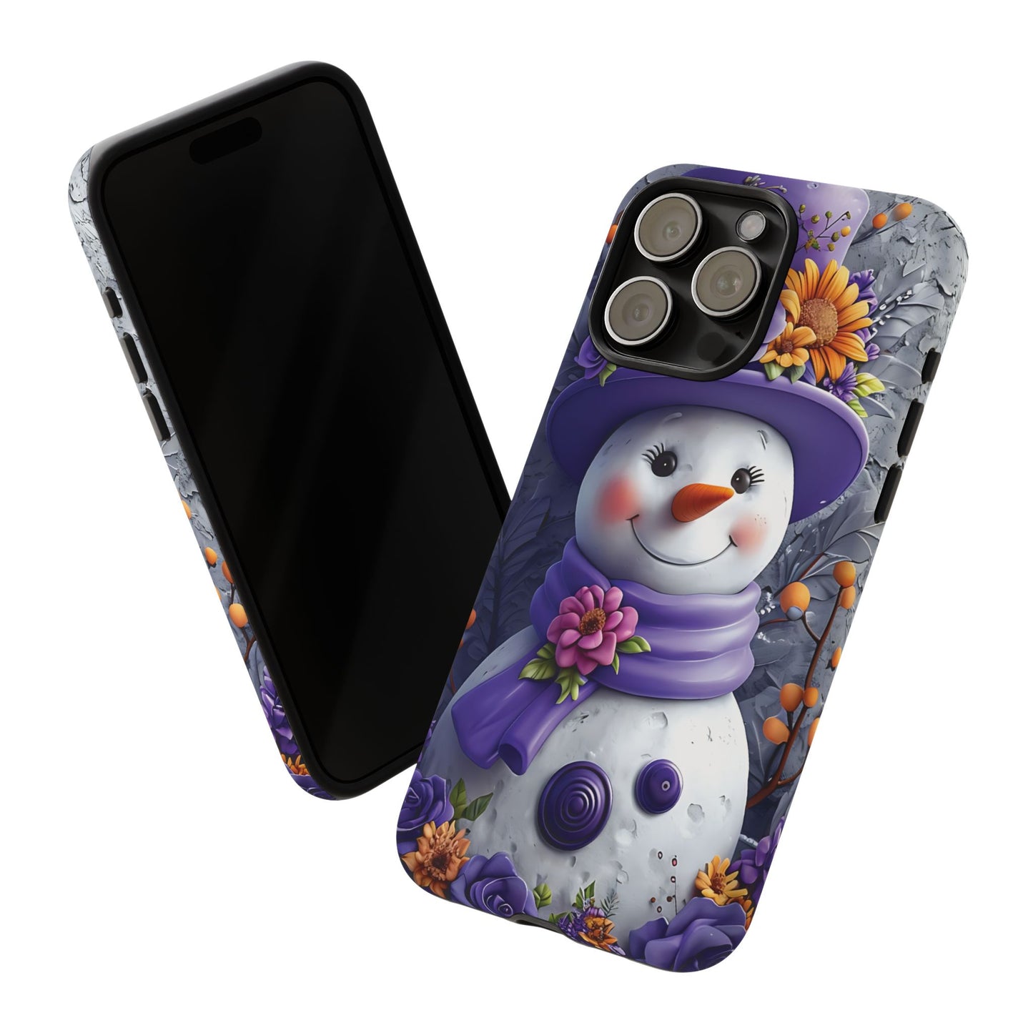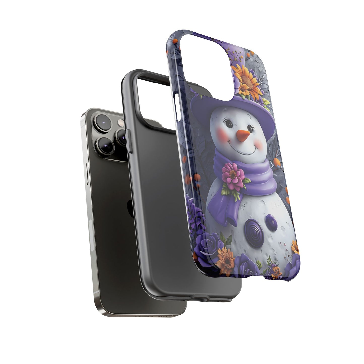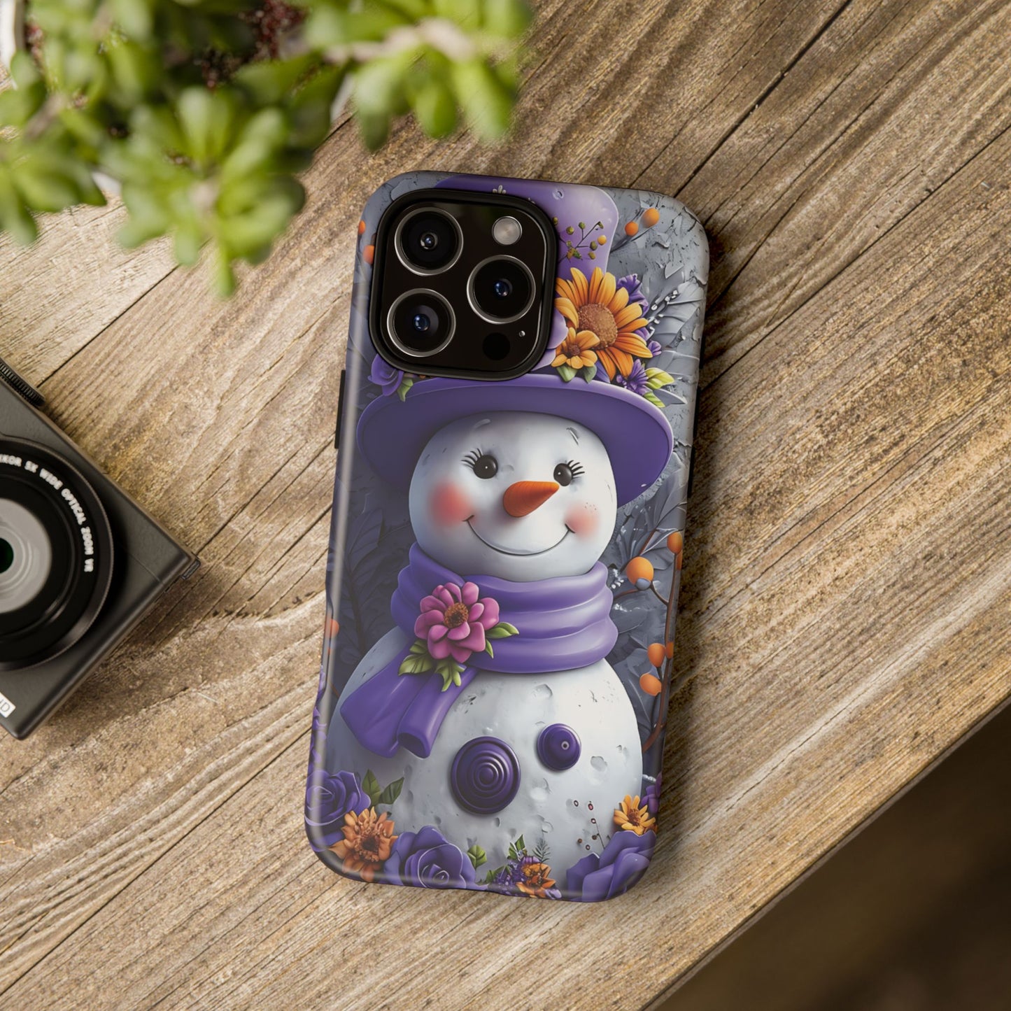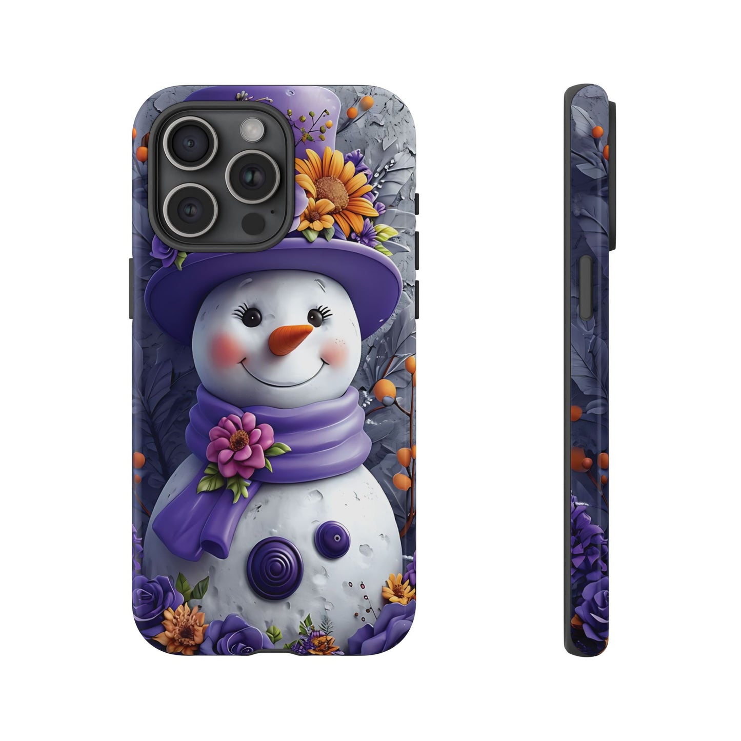 Bring the magic of winter to your phone with this delightful and cheerful snowman design! Featuring a whimsical snowman adorned with a vibrant floral hat and a colorful scarf, this phone case is the perfect blend of holiday