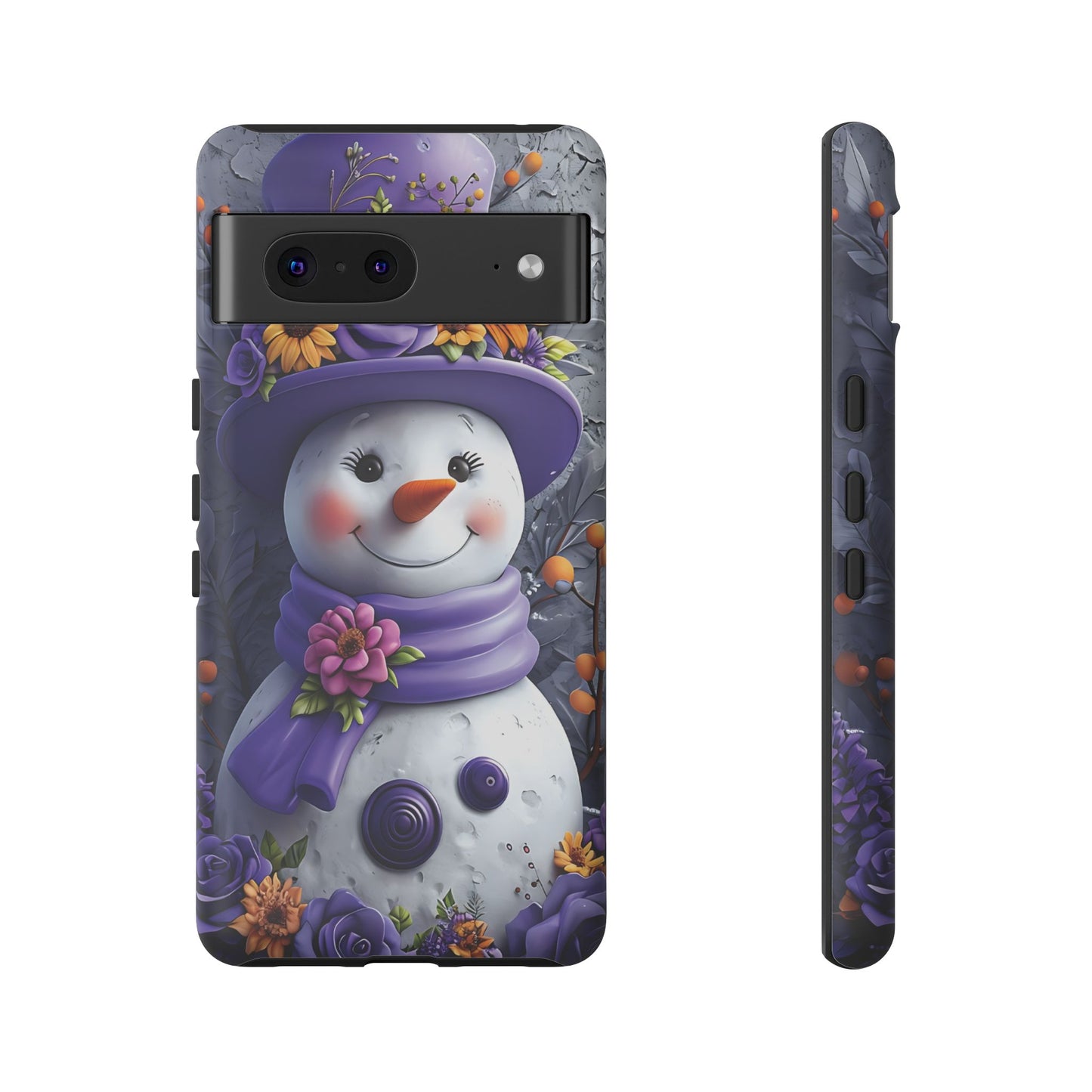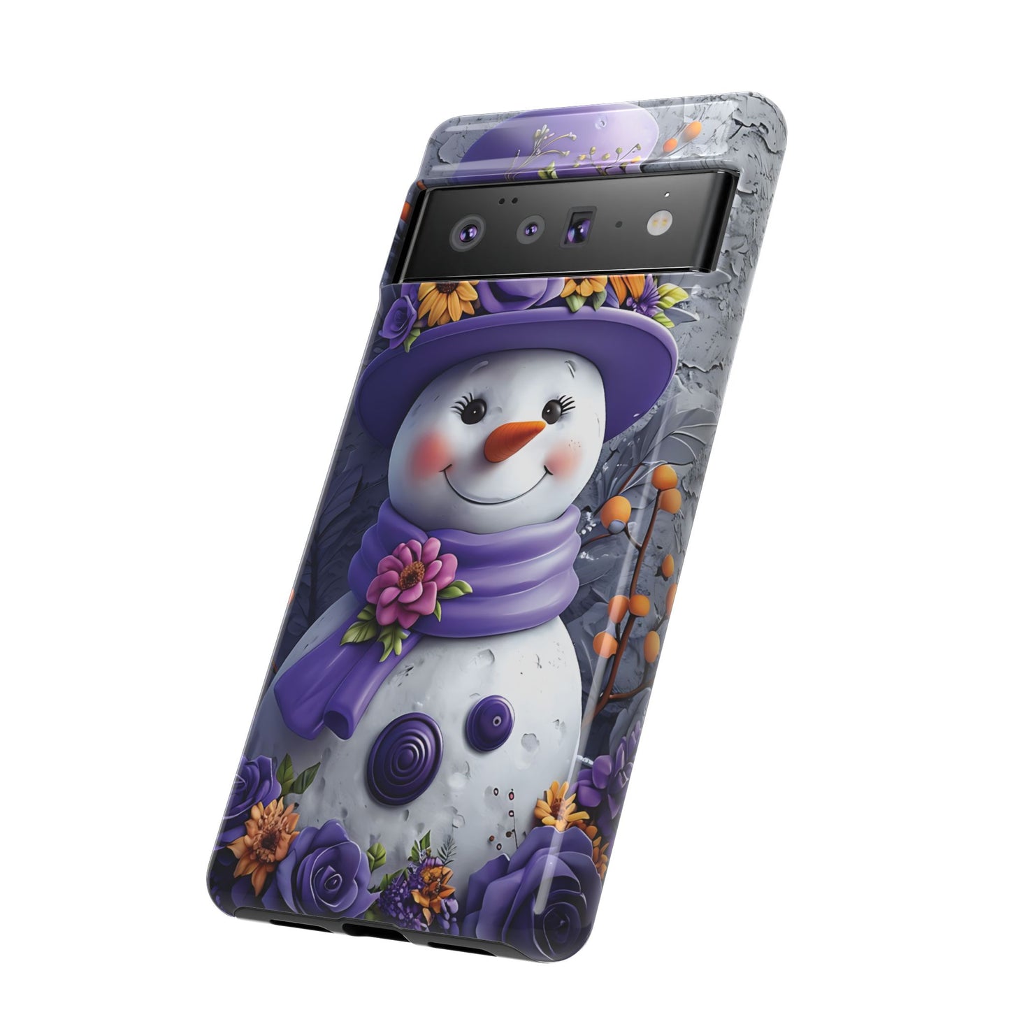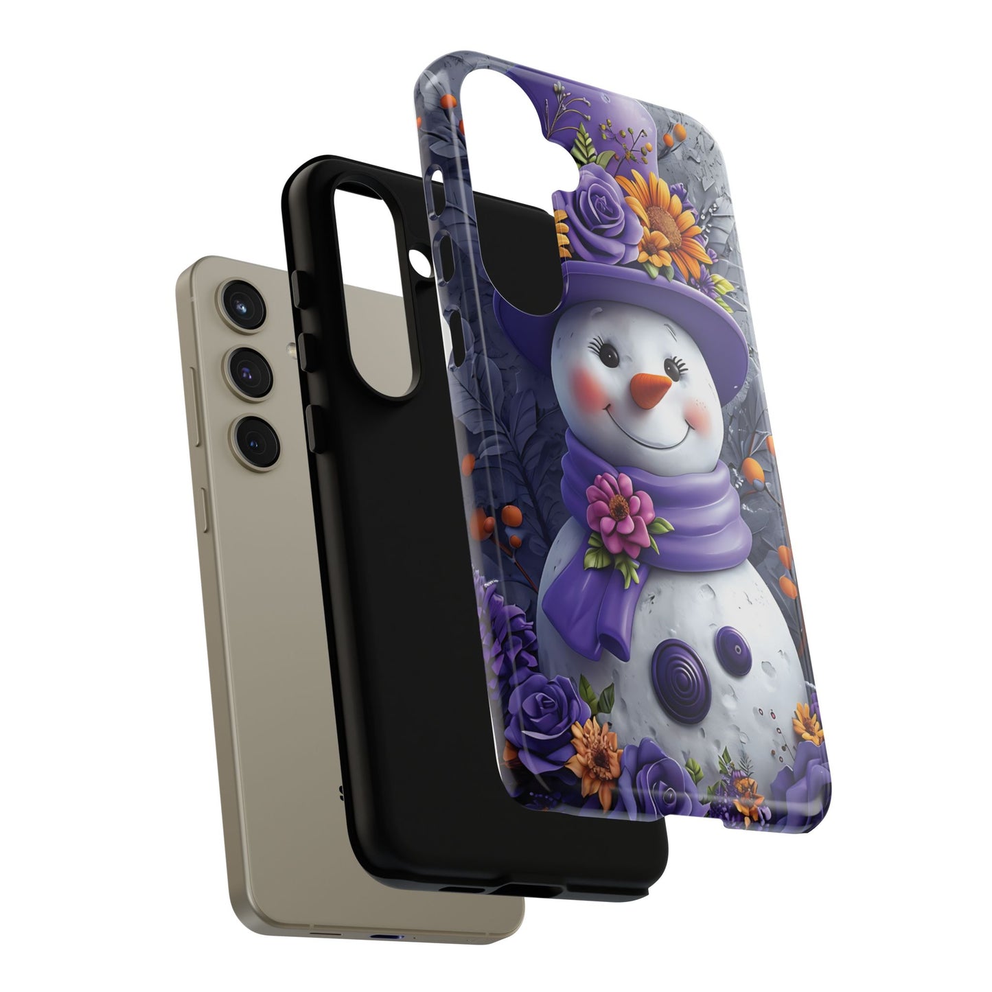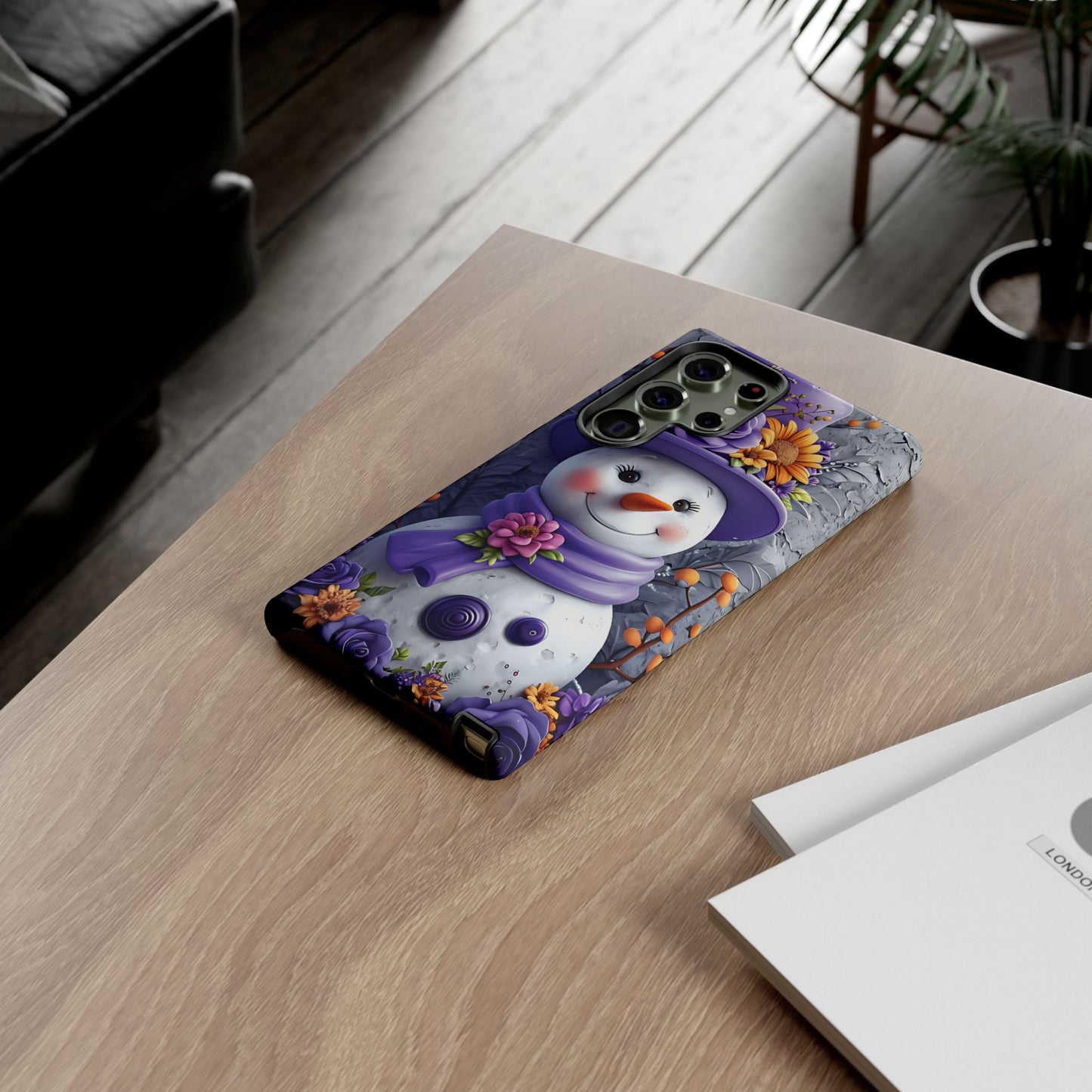 Bring the magic of winter to your phone with this delightful and cheerful snowman design! Featuring a whimsical snowman adorned with a vibrant floral hat and a colorful scarf, this phone case is the perfect blend of holiday