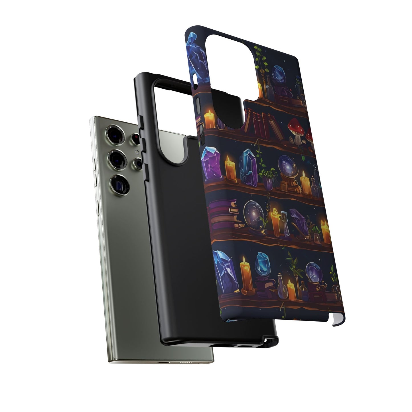 and other magical treasures, creating a cozy and whimsical fantasy vibe. Ideal for fans of fantasy, witchy aesthetics, or magical decor, this phone case combines practicality with otherworldly charm. Protect your phone in style