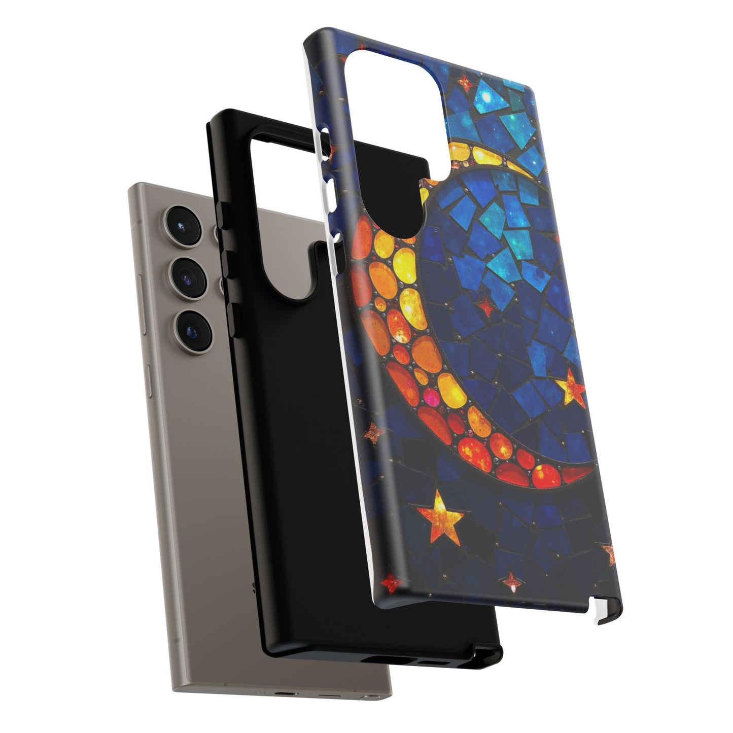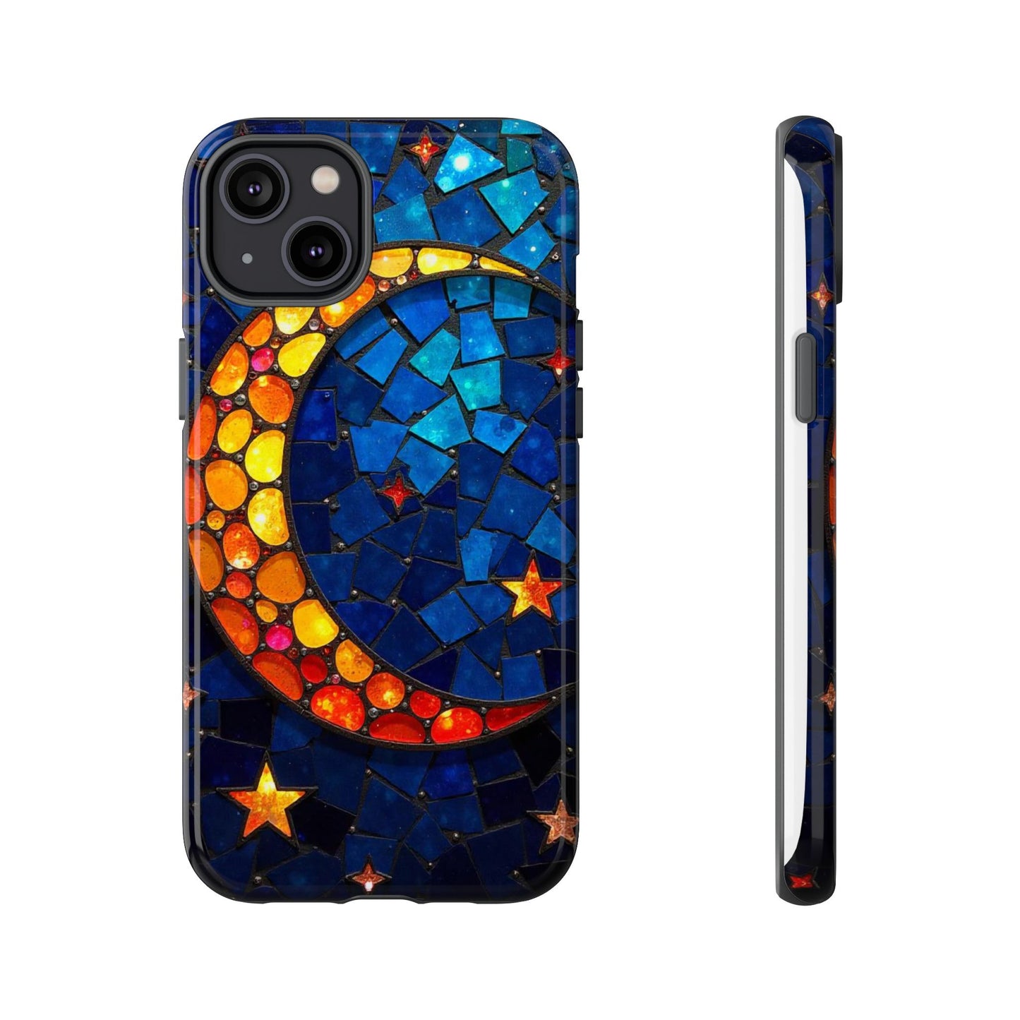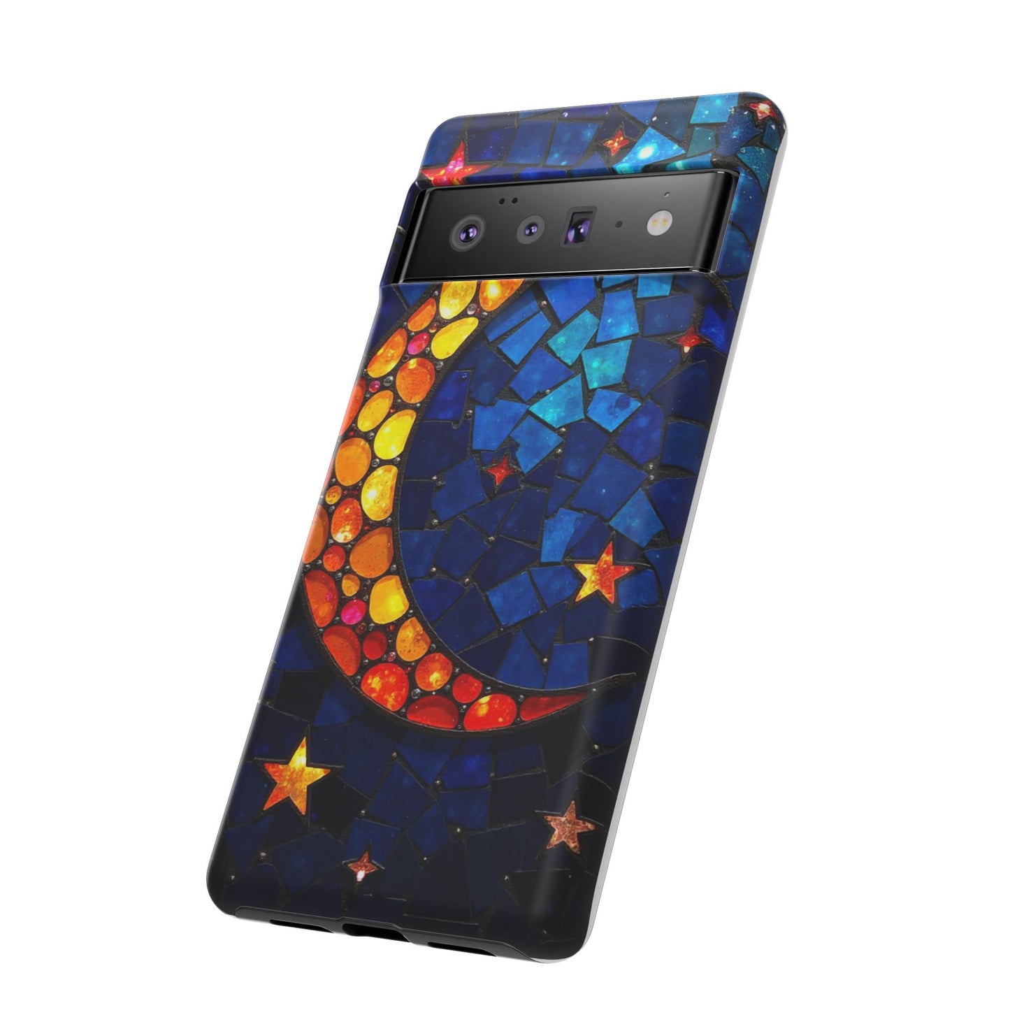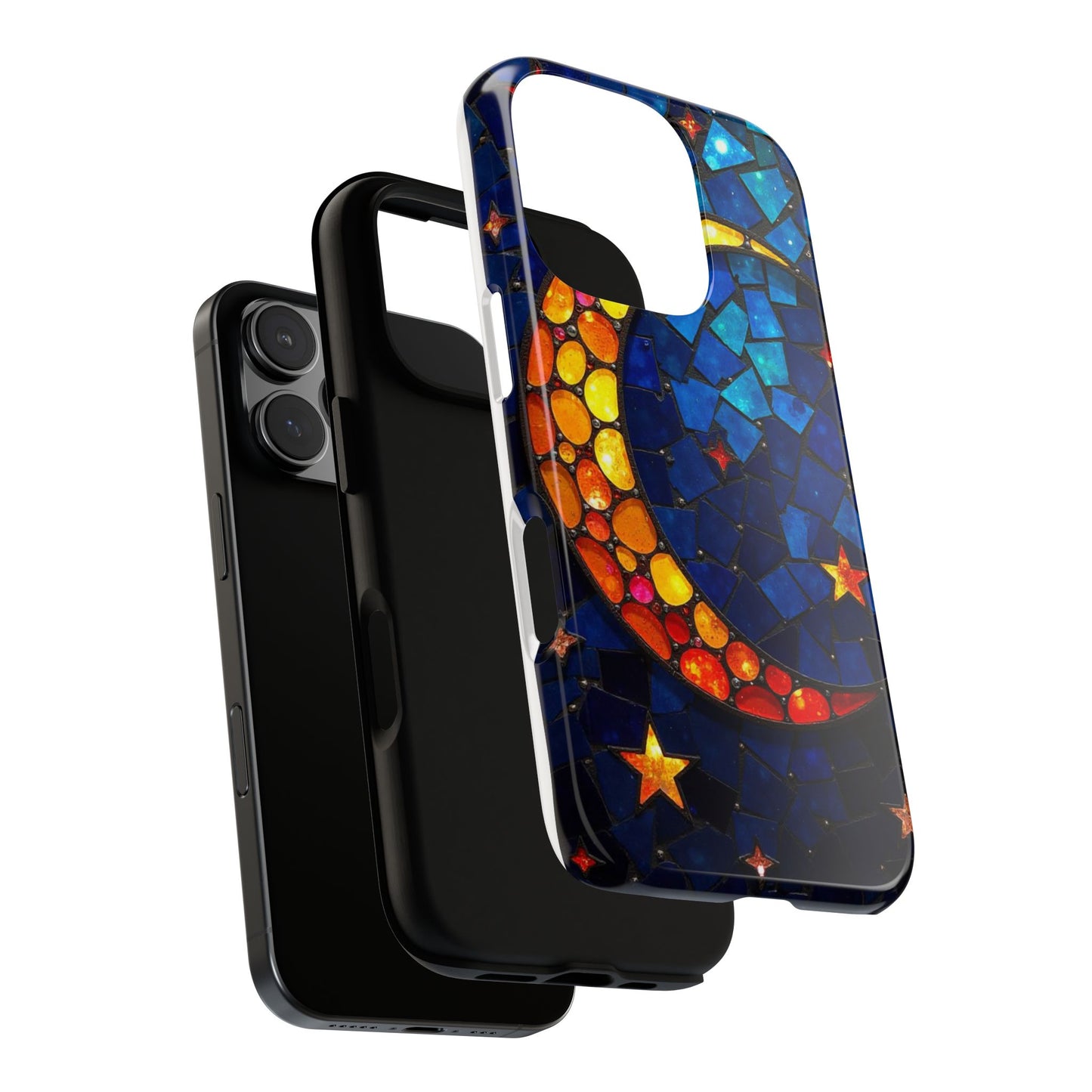 Immerse yourself in the enchanting beauty of the cosmos with this mesmerizing phone case. Featuring a radiant crescent moon surrounded by twinkling stars, this design comes alive with a spectrum of vibrant colors, evoking the magic of a starry night. Made from high-quality materials, it offers excellent protection while showcasing your celestial style. Perfect for dreamers and stargazers alike!