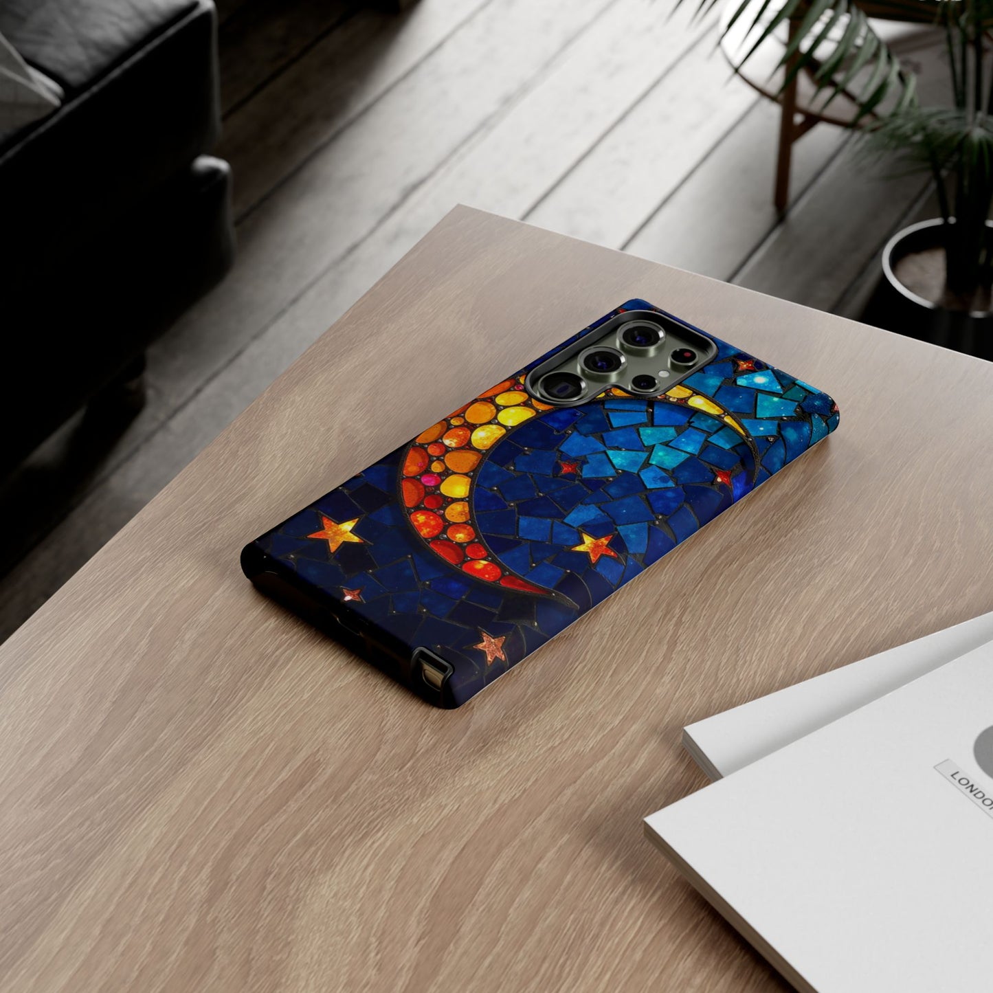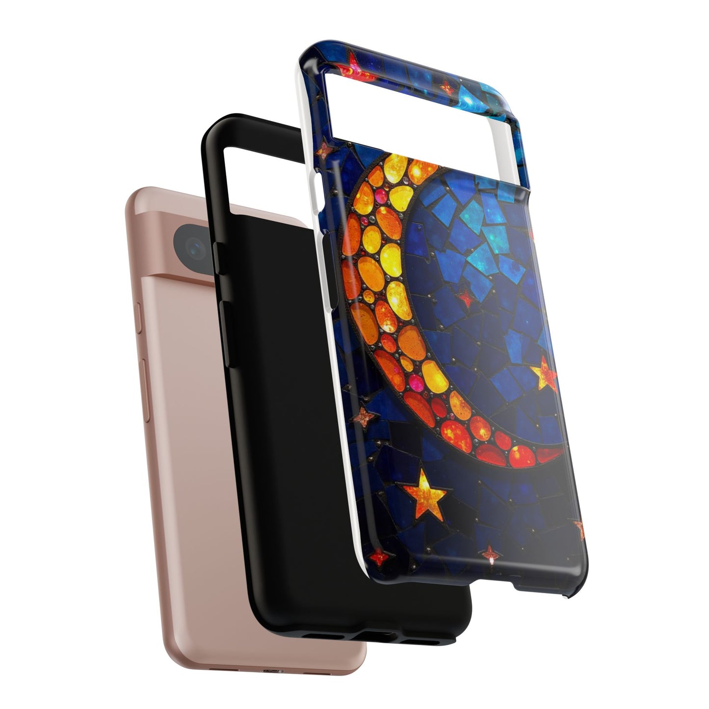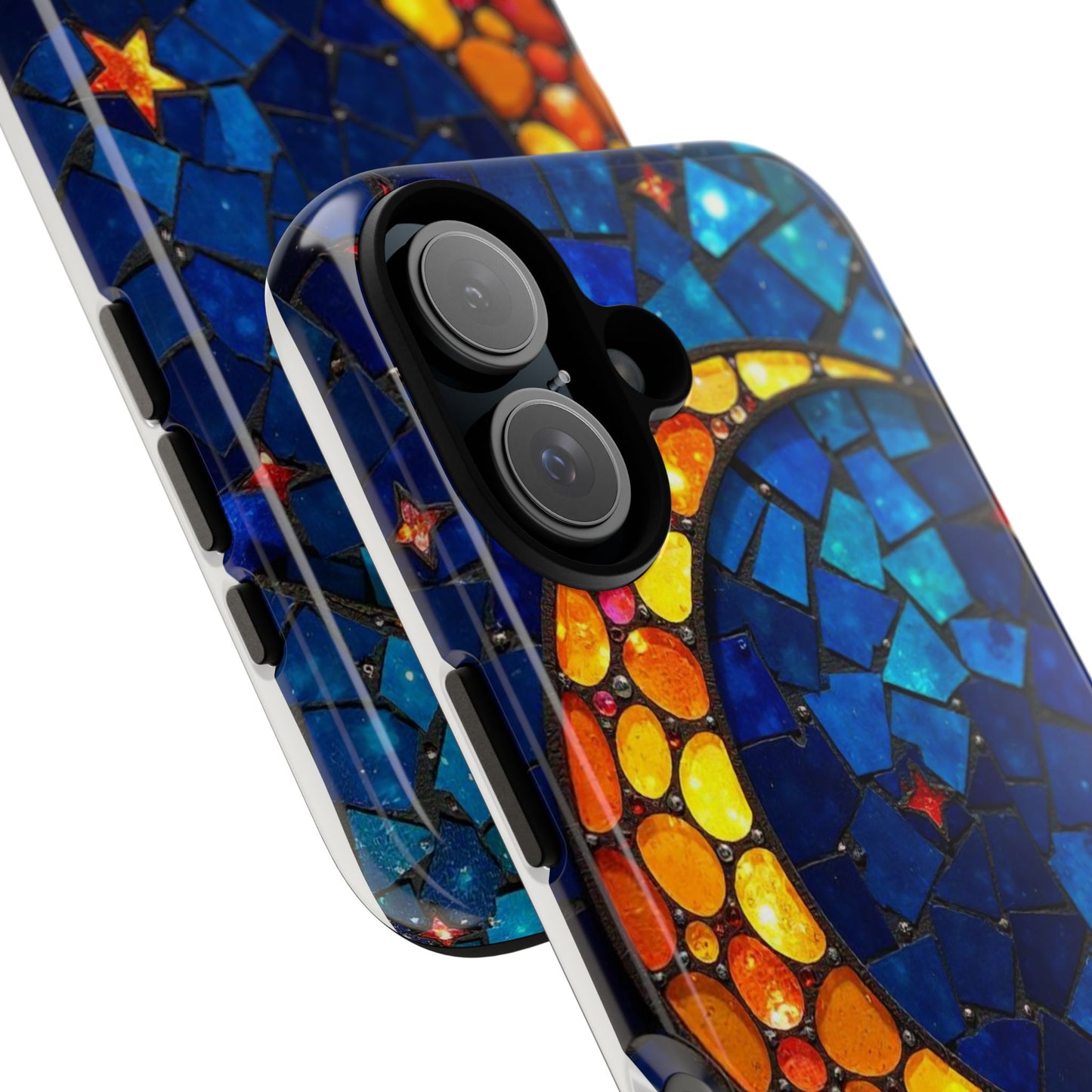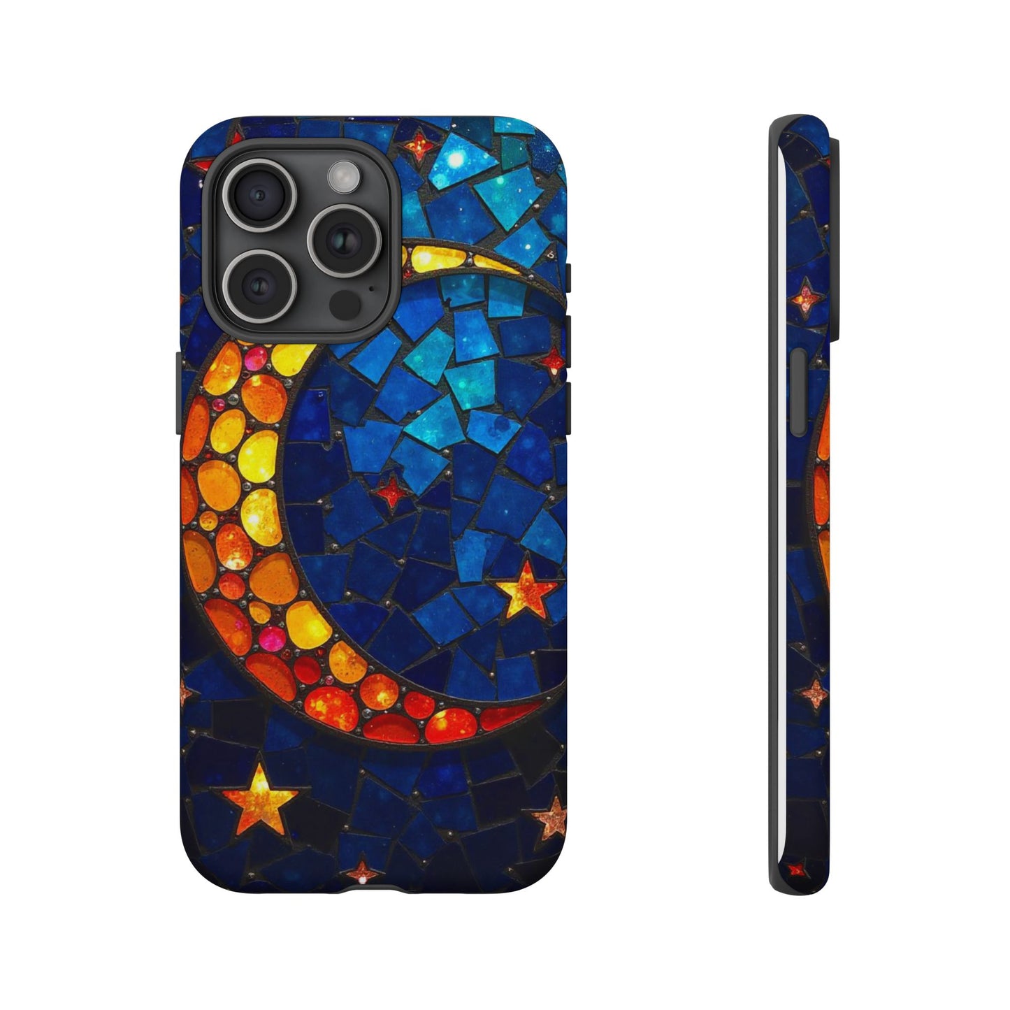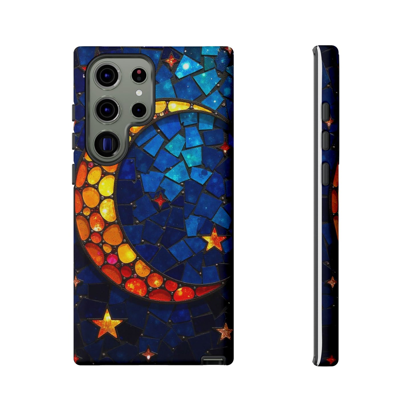 Immerse yourself in the enchanting beauty of the cosmos with this mesmerizing phone case. Featuring a radiant crescent moon surrounded by twinkling stars, this design comes alive with a spectrum of vibrant colors, evoking the magic of a starry night. Made from high-quality materials, it offers excellent protection while showcasing your celestial style. Perfect for dreamers and stargazers alike!