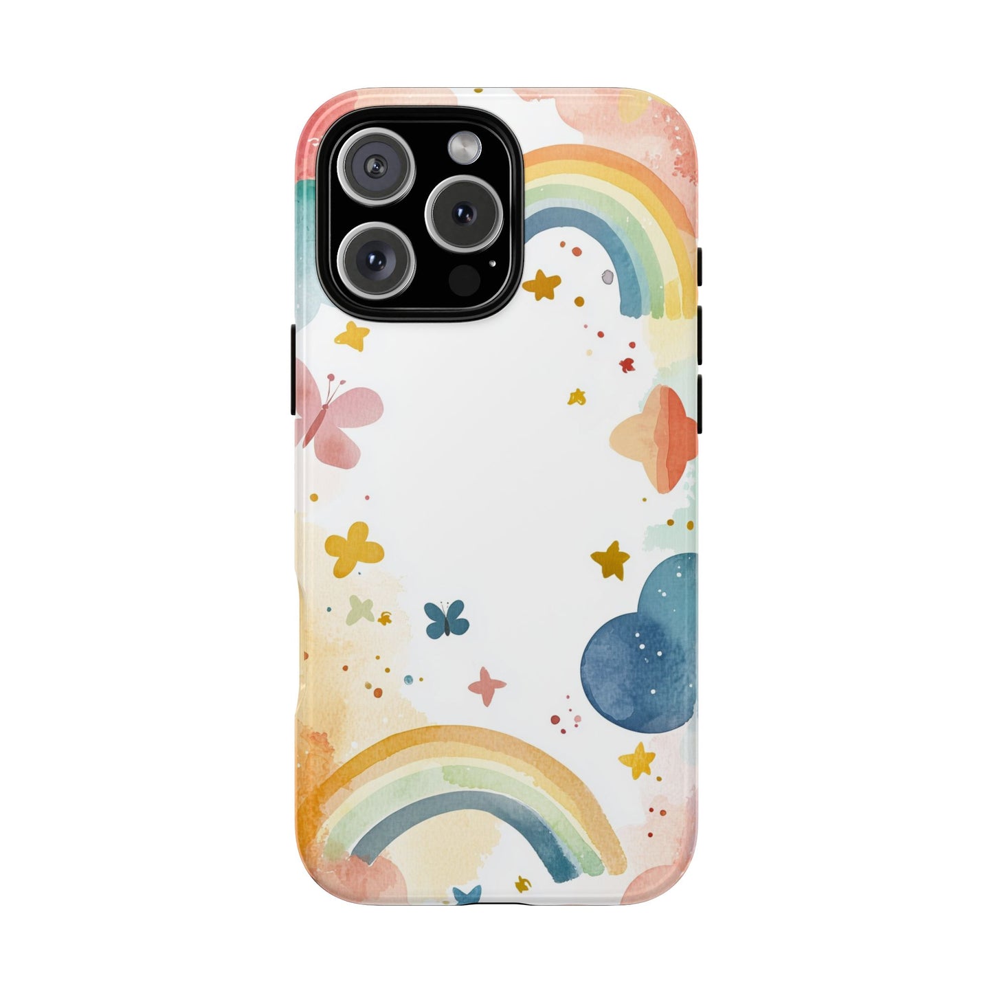 Whimsical rainbows, soft clouds, and fluttering butterflies in dreamy pastel hues. This charming watercolor phone case brings a touch of joy to every iPhone, Google Pixel, and Samsung device. Pure magic in your pocket.