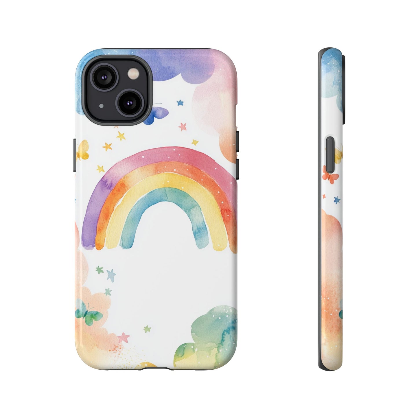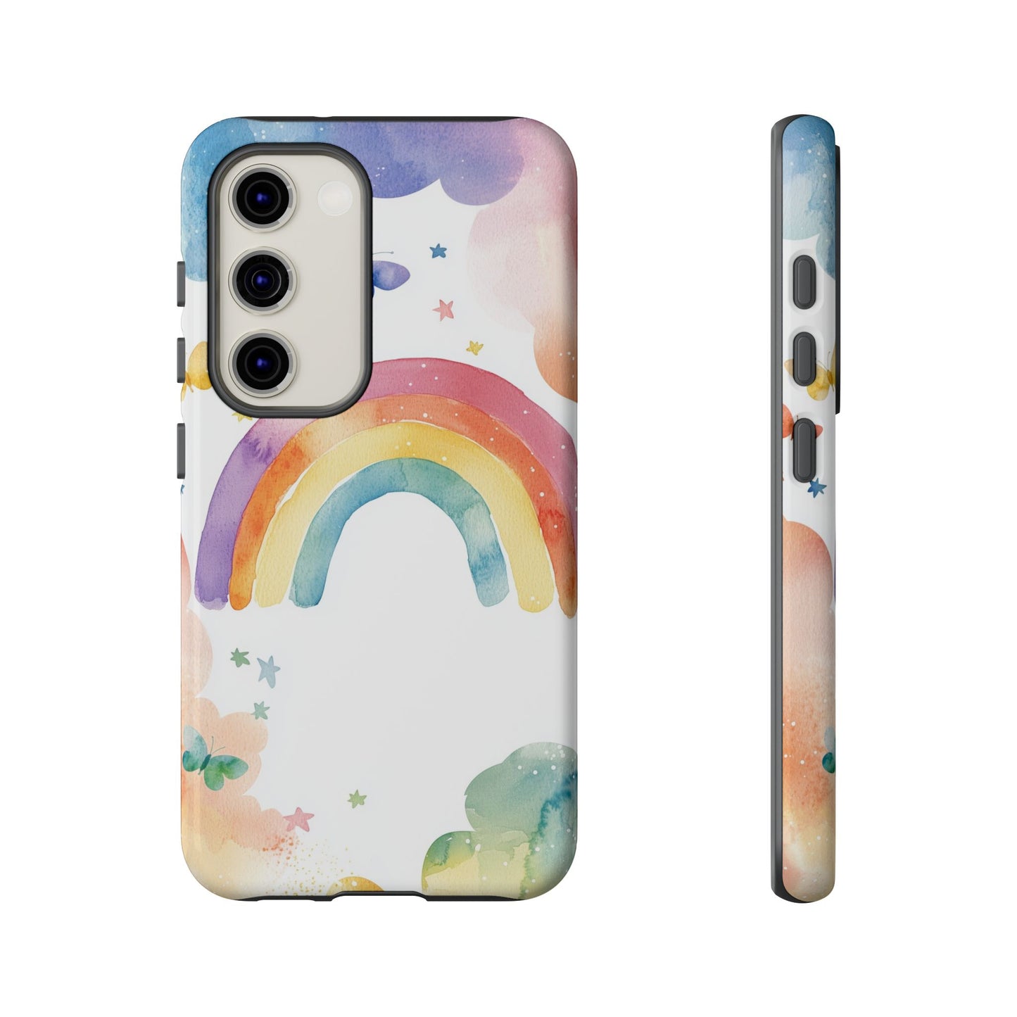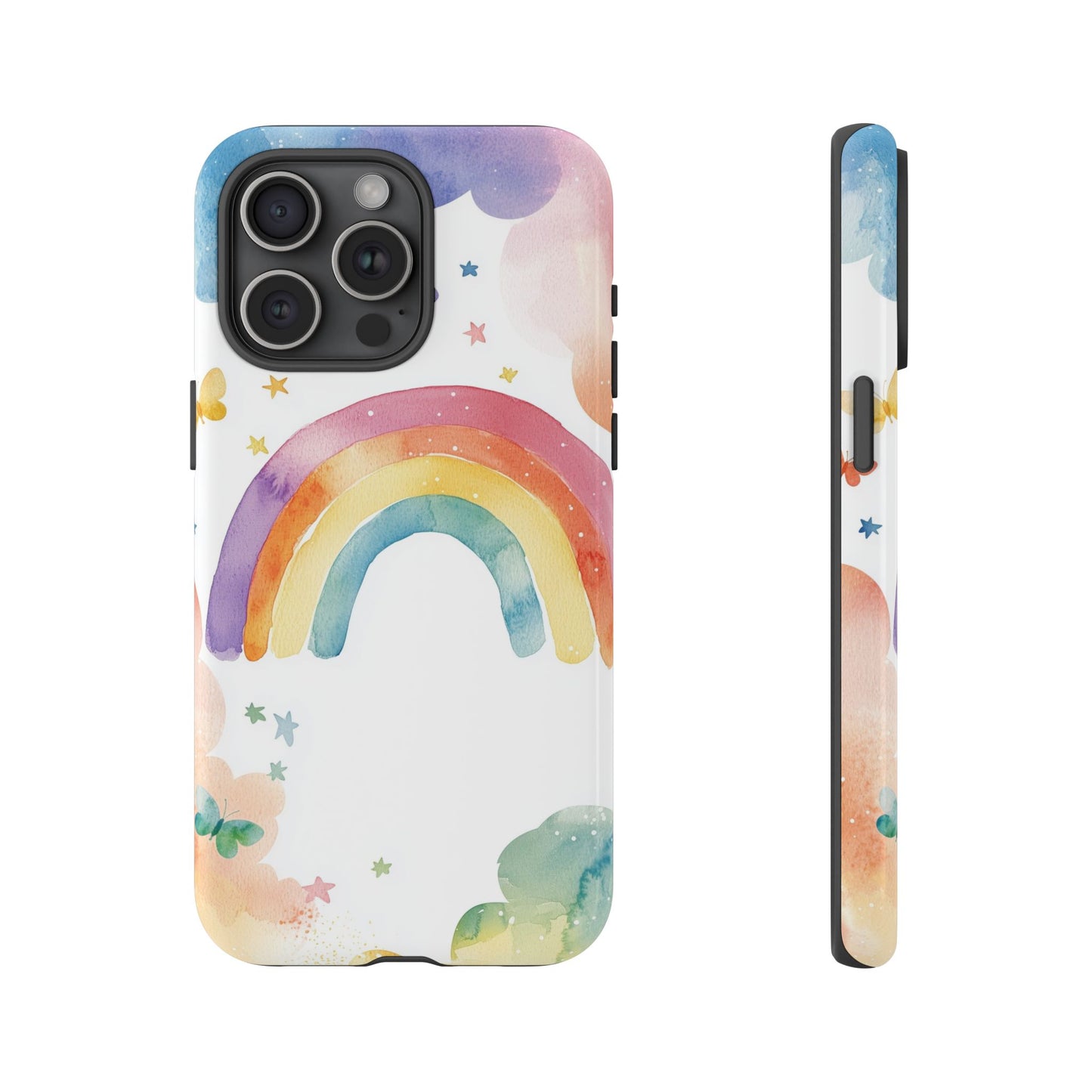 Bring a splash of joy to your day with this dreamy rainbow watercolor design, adorned with butterflies and soft pastel clouds. A vibrant yet gentle look for iPhone, Google Pixel, and Samsung phones—because your case should be as magical as your mood. 🌈🦋